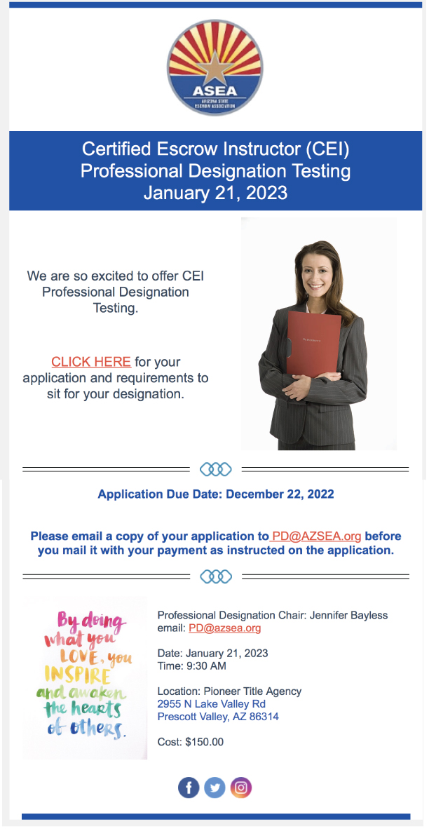 Certified Escrow Instructor (CEI) Professional Designation Testing
